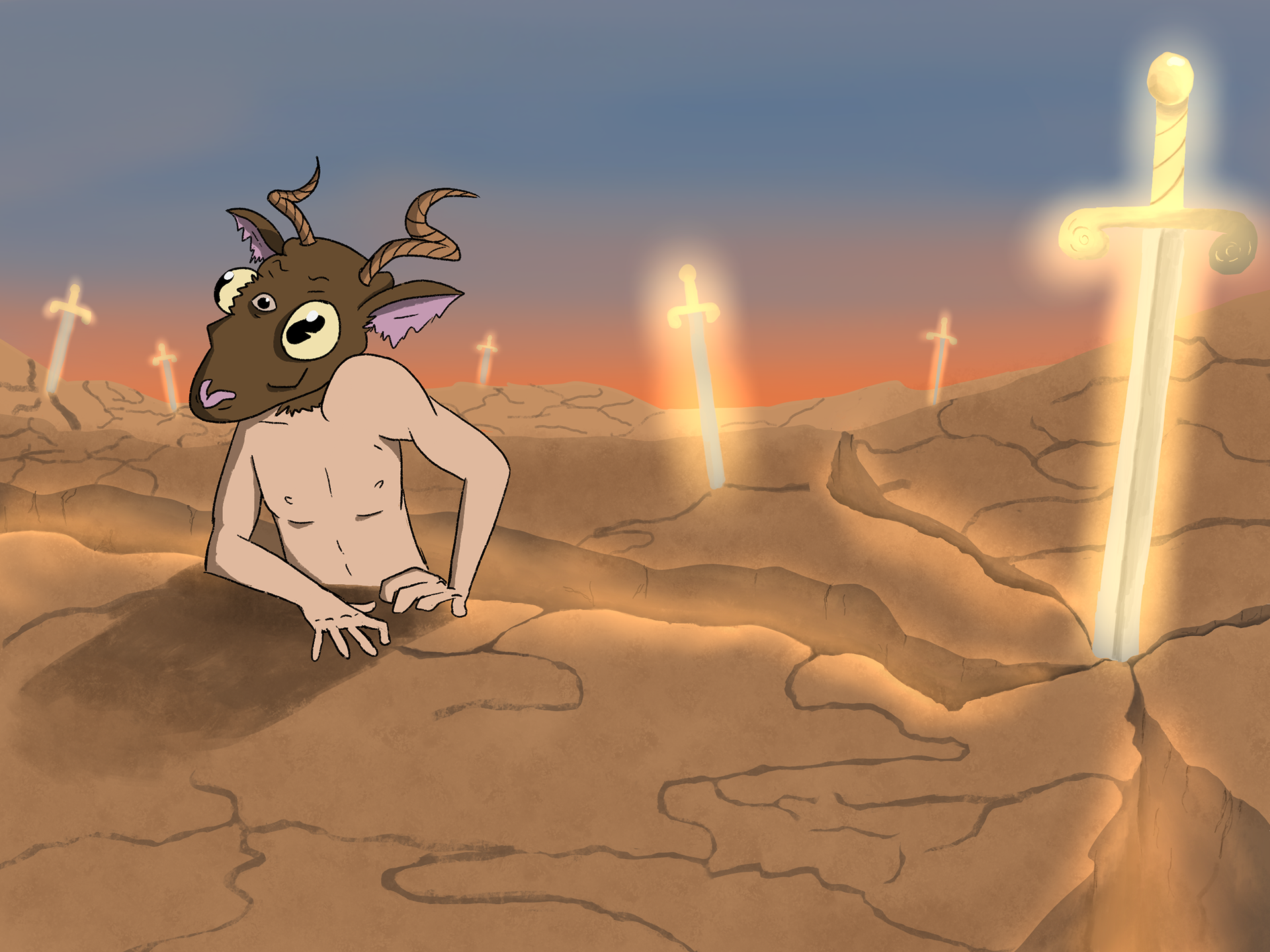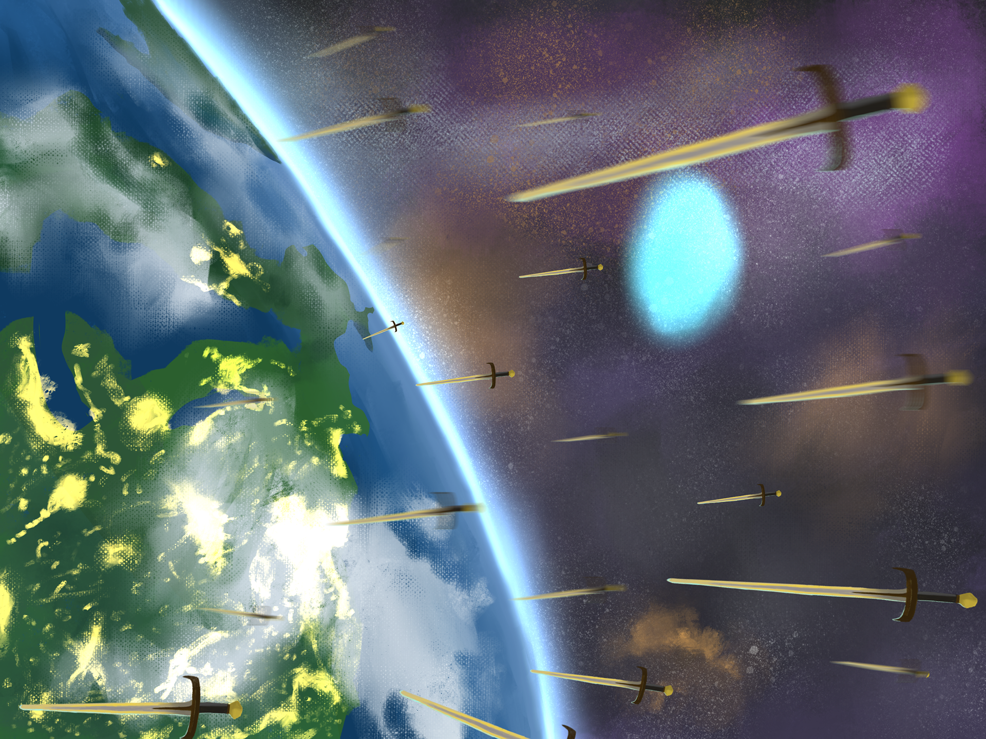 A series of work for the an end of the world concept, partially based on the Book of Revelations, where millions of holy swords rain from the sky wiping out humanity, and these new creatures take over.